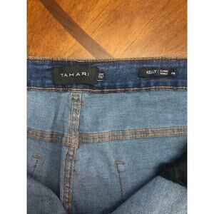 Tahari medium wash Kelly Classic Skinny Jean, 5 pocket, button/zip closure, 67% cotton, 21% polyester, 11% rayon, 1% elastane. Very good condition, smoke free home.