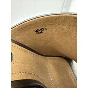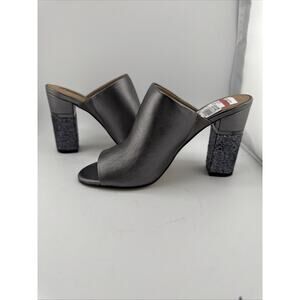 Tahari Melissa Women's Sz 5.5 M Leather Mule Sandals Glitter Heel Gray NWOB