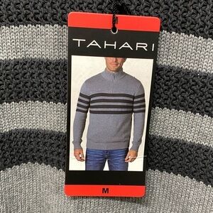 Tahari Mens Gray Striped 1/4 Zip Sweater Size M NWT