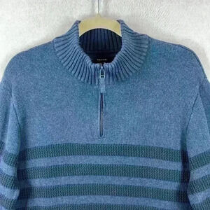 Tahari Men’s Sweater Sz XXL Navy 100% Cotton Long Sleeve Mock Neck Front 1/4 Zip