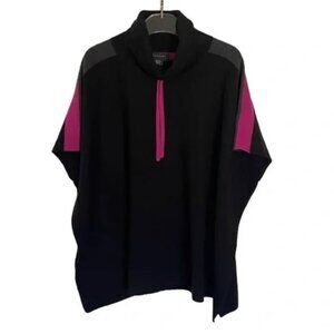 Tahari Merino Wool Cashmere Drawstring Shrug Poncho in Black/Pink Womens OS