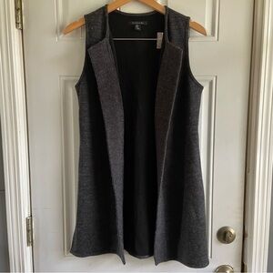 Tahari Merino Wool Knit Sweater Vest Open Front Gray Size Small