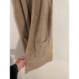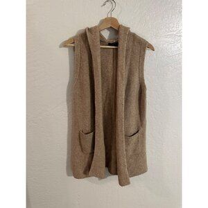 Tan sleeveless hooded pocketed sweater top with flattering seams by Tahari. See pics for more details.