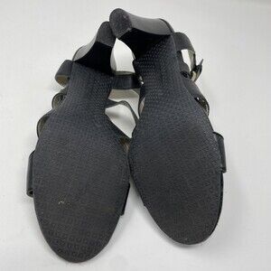 Tahari Mickey High Heel T-Strap Sandals Black Leather Ankle Strap Size 7.5.