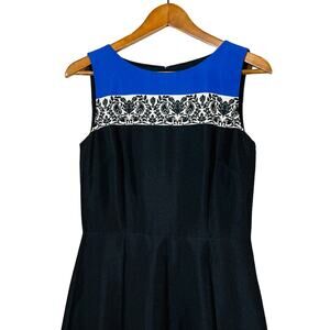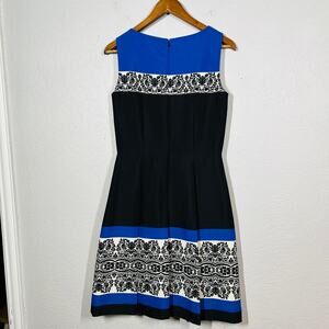 Tahari Midi Spring Dress Sleeveless Casual Fit & Flare Blue Black - 4