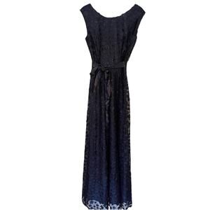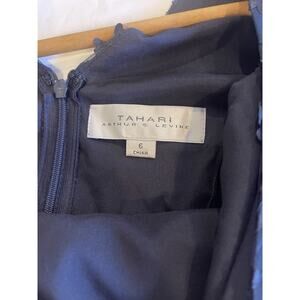 Tahari Midnight Blue 3D Floral Applique Cap Sleeve Ribbon Tie Sash Maxi Gown 6