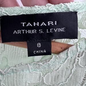 Tahari Mint Green Lace Cap Sleeve Peplum Sheath Dress Womens Size 8