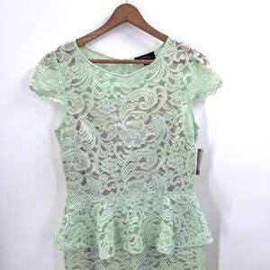 Tahari Mint Green Lace Cap Sleeve Peplum Sheath Dress Womens 8