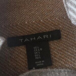 Tahari Mock Neck Plaid Sweater Neutral Colors Large
