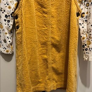 Charming mustard corduroy dress with a floral long-sleeve top. Ideal for casual outings. Excellent used condition, worn 1x and hung to dry