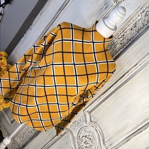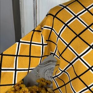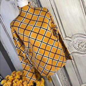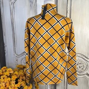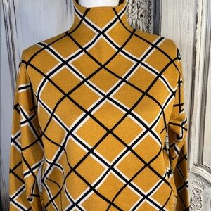 Tahari Mustard and Black Plaid Mock Turtleneck Long Sleeve Sweater NWOT