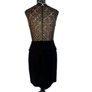 Tahari NWT Black/Gold Lace Back Peplum Ruffle Sheath Cocktail Evening Dress 10