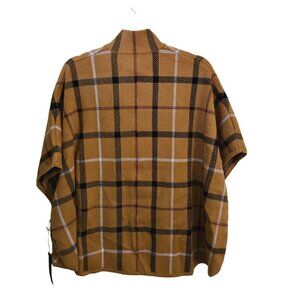 Tahari NWT Tan Plaid Full Zip Poncho Cape Size S/M