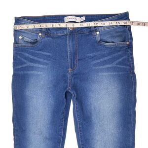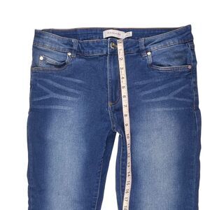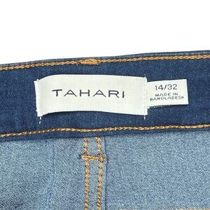 The Tahari Natalie Jeans in size 14/32 are a timeless piece for any woman's wardrobe. Made of a blend of polyester, spandex, and cotton, these dark wash denim jeans feature a mid-rise and a straight fit. With a 34-inch waist, a 27-inch inseam and a 5-pocket design, these jeans are perfect for all seasons, whether for a festival, school, city outing, or just for everyday wear. The classic blue color and zip closure make these jeans a versatile and stylish addition to any closet. We ship packages daily M-F. This item's fabric may attract lint or hair. It ships from a smoke-free, dog-friendly home. While it is clean, some lint or hair may remain.