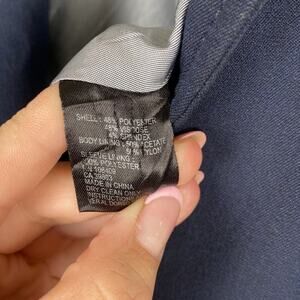 Design Features: Sleek navy blazer with a flattering tailored fit, single-button front closure, notched lapel, and two front flap pockets accented with stud details. Fully lined for polished comfort.