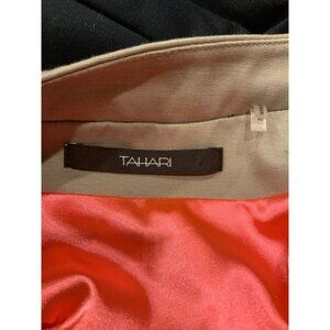 Tahari Navy Blue 3/4 Sleeves Jacket W/ Tan Trim & Zippered Pockets, Size 4 (US)