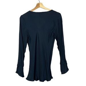 Tahari Navy Blue Houndstooth Fitted Cowl Neck Long Sleeve Blouse S