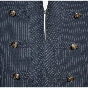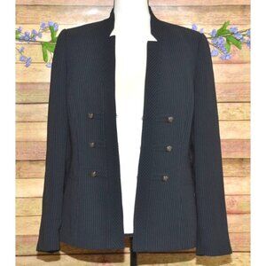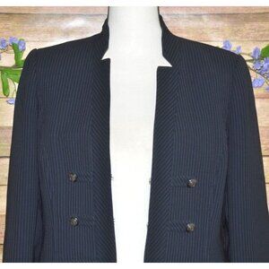 Tahari Navy Blue Pinstripe Blazer Jacket Military Button Accents Ladies Size 10
