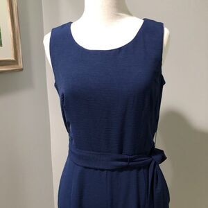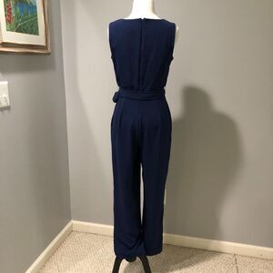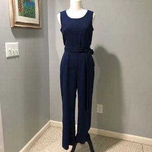 Tahari Navy Blue Sleeveless One-Piece Jumpsuit with Tie Sash Size 2