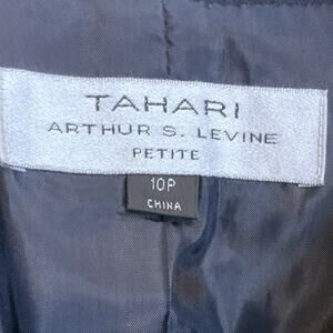 Tahari Navy Blue Subtle Stripe Blazer Jacket Women's Sz 10P Pockets Career