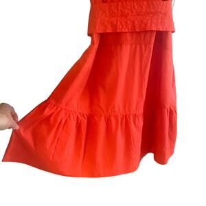Tahari Orange Mini Dress L Ribbed Tank Top Tiered Skirt Cotton Side Zip Resort