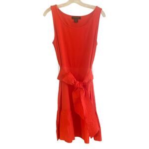 Tahari Orange Mini Dress in size Large. Ribbed Tank Top with Tiered Skirt with Matching Sash Tie. 100% Cotton. Side Zip. Good pre-owned condition.