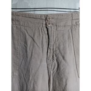 Tahari Pants 12 Tan 100% Linen Straight Leg Patch Pockets