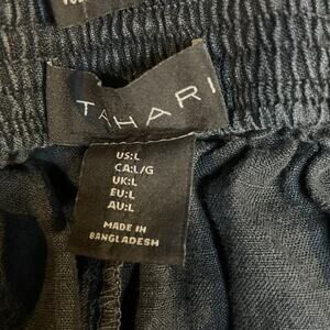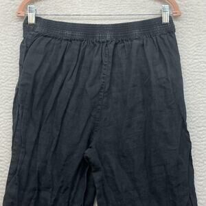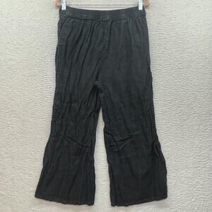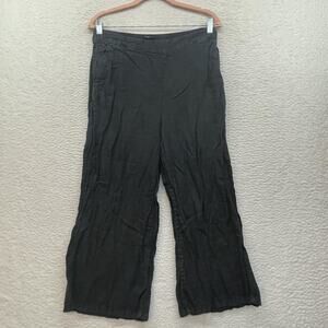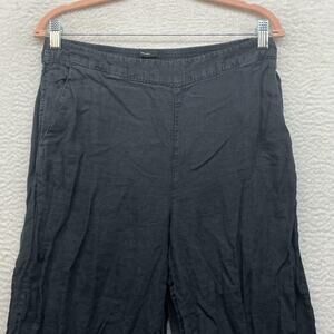Tahari Pants Womens Large Black Linen Wide Leg Pull On Elastic Waist Beach