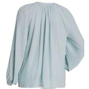 Tahari Pastel Baby Blue Oversized Peasant Tie Neck Tunic Top Sz S Modest Prairie