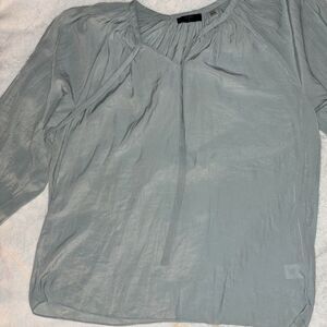 Tahari Pastel Baby Blue Oversized Peasant Tie Neck Tunic Top Sz S Modest Prairie Layer Polished