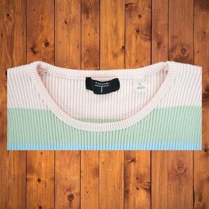 Tahari Pastel Sweater Women's Striped Colorful with Bubble Cuff Sleeves Sz Small