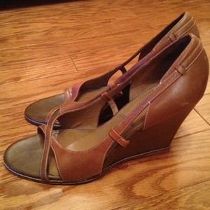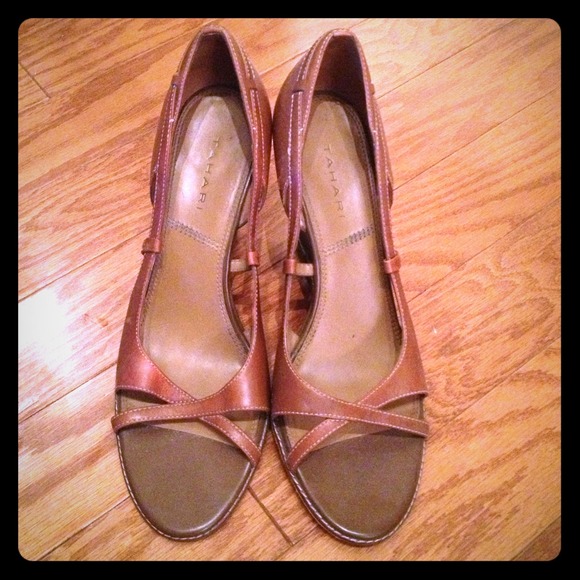Tahari peep toe camel wedges. 3" wedge. Minimal wear.