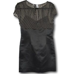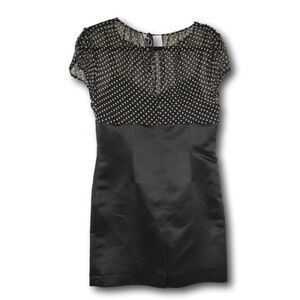 Tahari Petite Black Satin Dress with Polka Dot Mesh Top – Size 8P