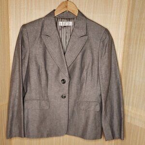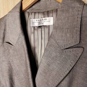 Tahari Petite Linen Blend Gray Menswear Inspired Blazer Small Petite