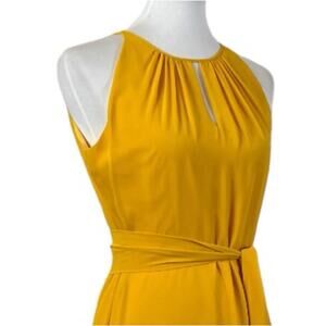 Tahari Petite Midi Dress Keyhole Halter Neck Hi Low Hem Yellow Women’s Size 6P