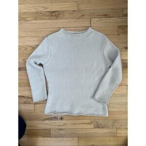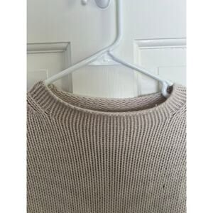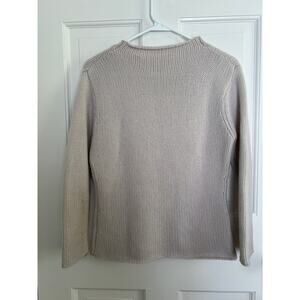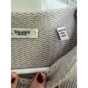 Tahari Petite Women's L 100% Cashmere Sweater Chunky Knit Oatmeal Beige FLAWS