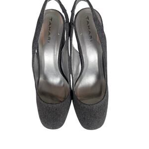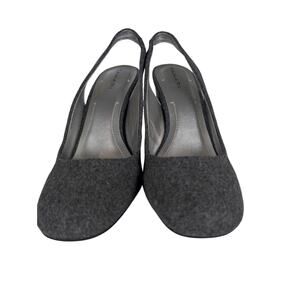 Tahari Pierce Gray Flannel Square Toe Chunky Heel Slingback Shoe 8.5 Classic