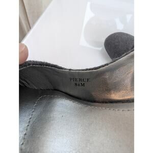 These Tahari “Pierce” slingback heels in size 8.5M are crafted in a heather gray felt-like textile upper with a soft metallic silver interior lining. Designed with a rounded toe and a sturdy 4" block heel, these shoes offer both comfort and sophistication. Ideal for office wear, formal events, or professional gatherings, they blend minimalist styling with a tailored, polished look.