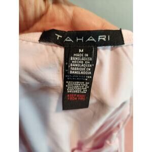 This Tahari pink slip dress in size M offers timeless elegance and comfort. Crafted with a silky stretch polyester blend, this chemise features adjustable spaghetti straps, a delicate lace trim neckline, and a soft drape for a flattering fit. Ideal for layering, lounging, or wearing as sleepwear. Feminine and versatile, this slip dress brings a subtle touch of luxury to your wardrobe. Style it under sheer dresses, with cozy robes, or wear it as a statement piece for a chic evening look.