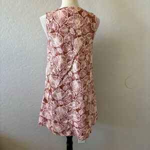 Tahari Pink Leaf Print V-Neck Sleeveless Linen A-Line Dress Pockets Size Small