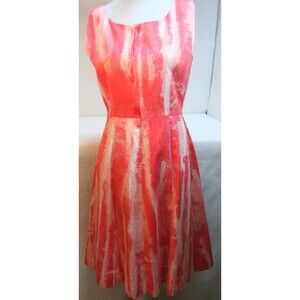Tahari Pink Watercolor Fit & Flare Day Dress Sleeveless Pleated Knee Length sz 8