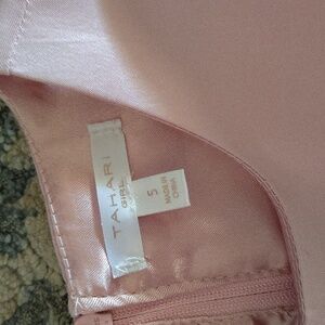 Charming kids dress by Tahari. Features a pink base with elegant gold floral embroidery. Ideal for formal events, Holidays, Church, Easter, Graduation, Flower girl dress, etc. Very good used condition! Has a small unraveling on seam of the back tie belt, but can easily be mended.