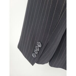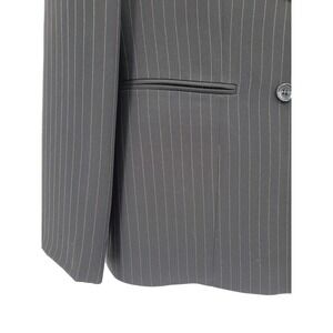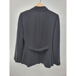 Tahari Pinstripe Double Breasted Black Blazer Jacket 10 Charcoal