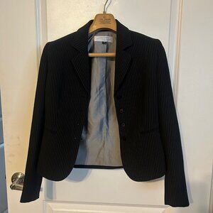 Tahari pinstripe suit, size 2p, almost new. Suitable for work or evening event. Nicely lined. Polyester. Dry clean only.