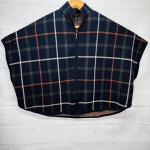 Tahari Plaid Zip Front Poncho Cape Sweater Knit Navy Multicolor Women’s S/M