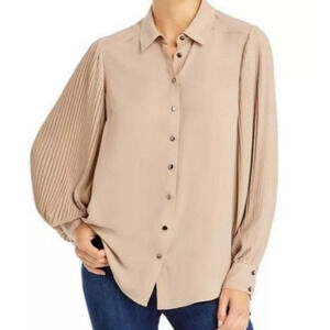 Tahari Pleated Balloon Sleeve Button Front Chiffon Blouse. Women's size Small. Excellent condition!
