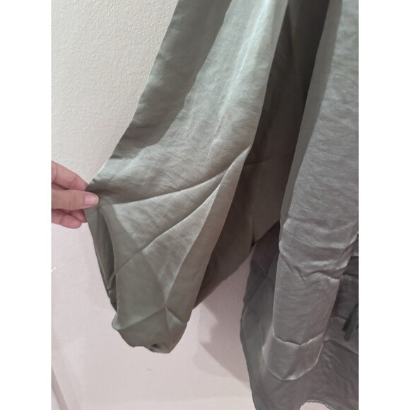 Tahari Pleated Satin Ruffle Blouse Top 2X Peasant Boho
