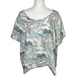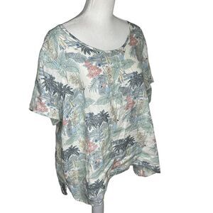 Tahari Plus 2X Top 100% Linen Short Sleeve Lightweight Tunic Woven Tee Shirt