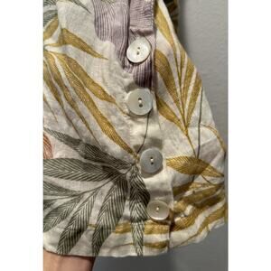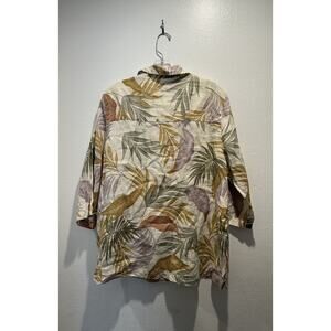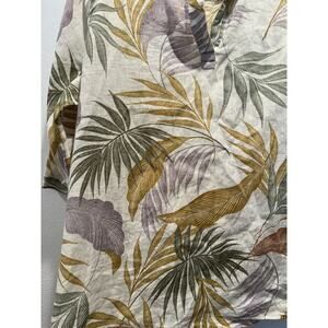 Tahari Plus Size 1X Tropical Print Linen Pullover Top Resort V Neck Coastal Palm