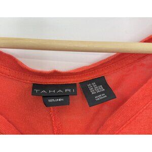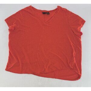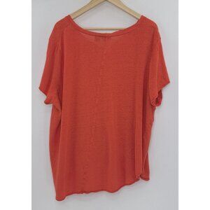 Tahari Plus Size Red Orange V-Neck 100% Linen Tee Shirt Size 3x Cropped? Boho